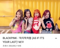 BLACKPINK的‘As If It’s Your Last’MV在YOUTUBE上突破了2亿点击数,创下了K-POP女团历代时间最短纪录。