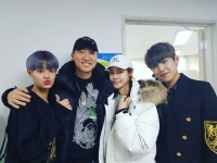Rhymer于17日在自己的SNS上传了文字“辛苦了,辛苦了”并附上了与李大辉-朴佑镇的合照。