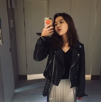 照片中徐信爱穿着皮衣展示着成熟视觉。展示着20岁的成熟美的徐信爱的模样使人印象深刻。