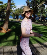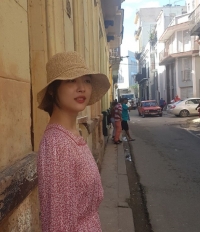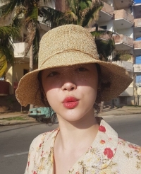 照片中是享受着古巴旅行的雪莉的模样。穿着粉色连衣裙展示可爱的美貌吸引着大众的视线。