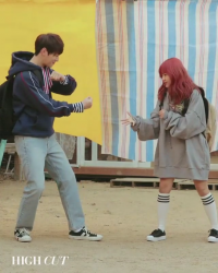 14日公开的影像中,身高相差30cm以上的两人在淘气地玩着石头剪刀布的游戏,展现了少男少女的魅力。