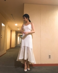 公开的照片中安昭熙在室内身着纯白礼服摆着姿势。令人晕眩的锁骨线条以及肩膀线条都好好地展示了昭熙的性感魅力。人偶般的比例也十分抢眼。