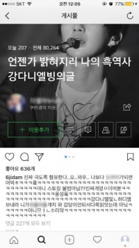 不过人红难免是非多,曾参加选秀节目《Show Me The Money 3》及《Unpretty Rapstar》20岁女Rapper陆智檀今日凌晨在Instagram发文,自称曾与姜丹尼尔拍拖,更指姜丹尼尔不听她的电话。