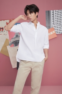画报中,朴宝剑合理利用基本单品,散发出了今年夏天男性的日常服装时尚感。朴宝剑用宽松款白色的棉裤子和细节点缀的T恤,给人带来清新的氛围,散发出时尚的魅力。