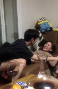 在公开的影像中,穿着黑色短袖和短裤的蔡晋与穿着棕色上衣和黑色长裤的赵贤雅在沙发上打闹。而二人在沙发上的姿势看起来过于亲密,多少让人有些觉得难为情。因此,有些网友认为他们在开玩笑,但也有人认为二人的关系应该已经不仅仅是朋友而已。