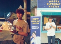 粉丝们为了纪念朴海镇生日特意送咖啡车去《四子》的拍摄现场,营造了很温馨的氛围。
