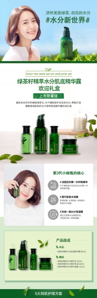 这款小绿瓶属于精华液,在使用悦诗风吟绿茶精萃保湿洁面乳后第一步就可以使用此产品。帮助干燥的皮肤补充水分,通过生绿茶水和绿茶籽油,在擦拭后可为肌肤形成一层保湿膜。
