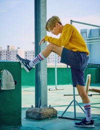 泰民在这次画报中展示了和夏天强烈的阳光相符合的色彩鲜艳的轻便鞋和充满复古风格Reebok的时尚。