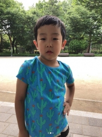 在公开的照片中, 书言和书俊双胞胎兄弟身穿相同的蓝色t恤摆着可爱的姿势。两个可爱的兄弟令人感到温馨。