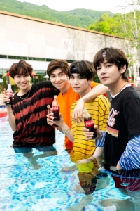 可口可乐于6日公开了防弹少年团和朴宝剑的TV广告拍摄现场花絮图。