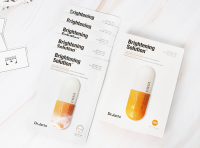 橙白药丸面膜纸采用的是普通纤维1/150的Deiner纤维,比普通面膜更细腻,看起来稍显厚重,却比一般面膜更促进精华吸收。精华是乳白色质地,富含白皙肌肤的神经酰胺等提亮成分,改善暗沉肤色。
