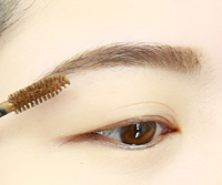 从眉头到眉尾,顺着生长方向轻轻地梳理开,并沿眉头向上梳理