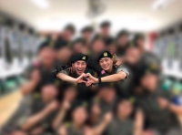 照片里,尹斗俊与徐恩光分别举起左、右手比成爱心形状,两人都穿着军装在房里相遇,拍下历史性一刻的合照,脸上露出灿烂笑容,两人看起来相当适应军中生活。照片公开后,也有粉丝思念不已,留言“好想念你们”、“快去快回”。
