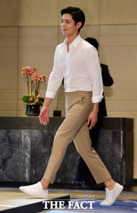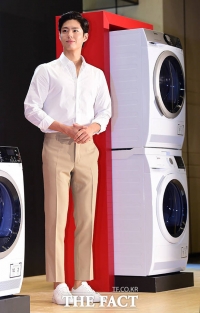 日上午出席在首尔光化门普赛斯酒店举行的某家电品牌新产品上市纪念活动上。
