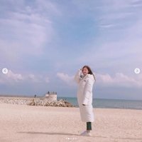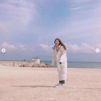 郑采妍于17日在个人ins上传了几张照片并配上了文字“秋日冬日大海,很久没来大海,现在是穿长羽绒服的季节”。
