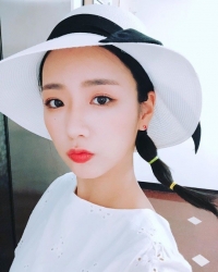 公开的照片中,尹普美身穿白色服装,露出可爱的表情。戴着帽子和扎着辫子的尹普美,展现了漫画主人公般的面貌,吸引了人们的眼球。