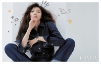 泫雅清秀调皮的新面孔被画报原封不动地拍了下。牛仔和白色T恤、工装服等休闲服饰搭配大胆设计的手表,展现酷酷的风格。