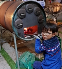 照片中的三胞胎,亲自烤红薯或者贩卖地瓜的样子,诱发了大人的微笑。