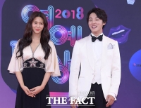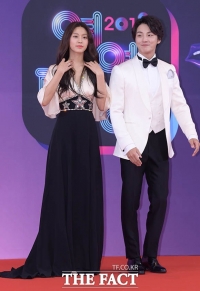 [The FactㅣReporter Sejung Kim] Seolhyun (left), a singer and an actress, and Shi-yoon Yoo, an actor, are taking pose during their participation of ‘2018 KBS Entertainment Awards’ held at main building of KBS located in Yeongdeungpo-gu, Seoul on 22nd afternoon.