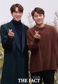 [THE FACT] Yoo Yeonseok and Son Hojun, both actors, are taking pose during their participation of the production presentation of ‘Coffee Friends’ of tvN held at Imperial Palace Hotel in Nonhyeon-dong, Gangnam-gu, Seoul pm the 4th morning.