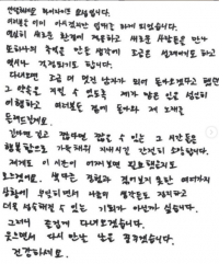 梁耀燮这天凌晨通过自己的SNS说:“忙着准备和大家见面的朋友们真是很满足和帅气啊。很担心远路而来会很辛苦,所以提前告别了。我诚恳地祈祷朋友们在各自的时间里能度过幸福的时光。祝大家身体健康”。并公开了一封亲笔信。