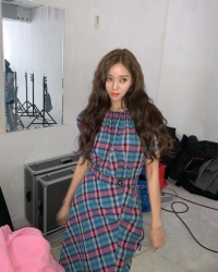 照片中,孝敏以长波浪卷发型展示了漂亮的姿态。孝敏以格子纹连衣裙营造了活泼了氛围,吸引了视线。