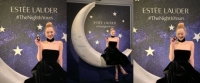 雪莉染了一头金发,梳着整齐的盘发,还穿着一件露出颈部的黑色礼服。与电影《罗马假日》中奥黛丽赫本的"赫本装"风格相似。