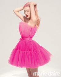 画报中,雪莉以一头神秘的粉色头发和五颜六色的唇妆,散发出华丽又可爱的魅力。