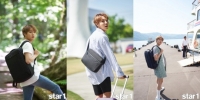 背上背着挎包,手里握着行李箱,宽松的条纹衬衫和短裤,再加上回头看的兴奋表情,仿佛刚到度假地一般,让人心动不已。 在码头上拍摄的另一张照片中,他身穿格子衬衫,背着背包,搭配膝下袜,以时尚造型完成了要开始背包旅行般的恶作剧理念。