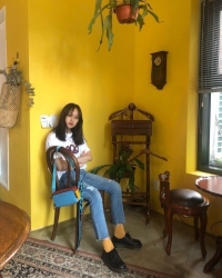 在公开的照片中,金宝拉坐在黄色背景前的椅子上,休闲装展示了清爽的魅力。