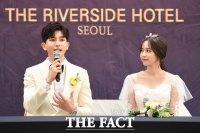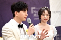 成员李基燮和演员郑宥娜出席记者会。