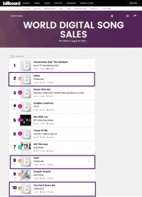 以8月22日Nielson Music为基准,EVERGLOW是第一位在Billboard世界数码歌曲销售排行榜中排名第二的K-POP歌手,新专辑《HUSH》中收录的3首歌曲都进入了该排行榜。