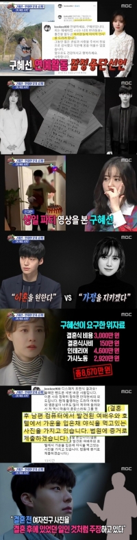 在当天的节目中,还介绍了具惠善的爆料战和安宰贤的应对。 引发争议后宣布暂时中断活动的具惠善公开了结婚生活中与安宰贤写的契约书,再次掀起了风波。