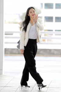 日下午因拍摄时尚品牌画报行程,从仁川国际机场飞往法国巴黎,治愈的笑容
