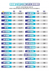 截止到本月31日统计的10月第3周评分排名中姜丹尼尔以9万6367票的票数连续84周位居榜单第一。11月1日,姜丹尼尔的粉丝DANITY为纪念姜丹尼尔Solo出道100天向韩国白血病儿童财团捐赠了961万2100韩元。