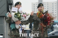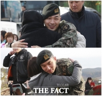 组合BigBang成员太阳和大声于10日上午在京畿龙仁地上作战司令部退伍后,举行了简短的粉丝见面会