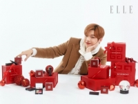 姜丹尼尔与红色套装的圣诞系列产品一起摆着造型,他温柔的微笑着凝视镜头,似乎化身圣诞老人。