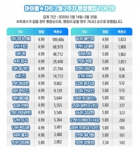 截止到20日统计的2月第2周评分排名中,姜丹尼尔获得了10万9406票,连续100周创下了最多得票。姜丹尼尔从2018年3月的第5周开始到现在一直稳坐最多得票的位置,并刷新了最长连续记录。