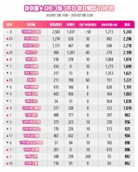 紧随他们之后的是IU(总分2296分),NCT127(总分2218分),ITZY(总分2109分),永卓(总分1874分),林英雄(总分1699分),CRUSH(总分1621分),金泰亨(总分1221分),MAMAMOO(总分1191分),ZICO(总分1063分)等。