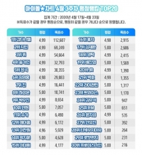 截止到23日统计的Idol Chart4月第3周评分排名中,姜丹尼尔以11万2607票获得了第一名。