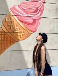 智秀28日在自己的Instagram上传了多张照片。照片中的智秀在画着冰淇淋的墙壁前摆出各种姿势,让人心动。