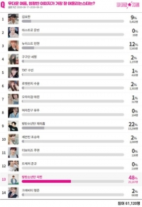 组合防弹少年团的智旻被选为最适合清凉感的明星根据Idol Chart,本月17日至23日在Idol Chart上进行的"炎热的夏天,最适合清凉形象的明星是?" 的问卷上智旻以2万9187票,获得了1位。在总票数6万1120票里面得票率约为48%。问卷调查的结果可以在Idol Chart的POLL菜单上得到确认。现以"亲和力最好的明星是谁?"为主题进行问卷调查。