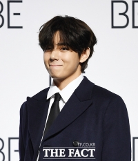 20日上午,防弹少年团V出席在首尔东大门设计广场举行的“BE(Deluxe Edition)”全球记者招待会,并摆出造型。