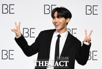 20日上午,防弹少年团J-hope出席在首尔东大门设计广场举行的“BE(Deluxe Edition)”全球记者招待会,并摆出造型。