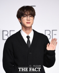 20日上午,BTS JIN出席在首尔东大门设计广场举行的“BE(Deluxe Edition)”全球记者招待会,并摆出造型。