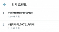 21日是V的《Winter Bear》发行500天的日子,V的粉丝们为了纪念这个日子,将"#WinterBear500Days"、"#Winter Bear_500日_祝贺"的提示列为韩国实时趋势第一、第二位,并发出了祝贺信息。