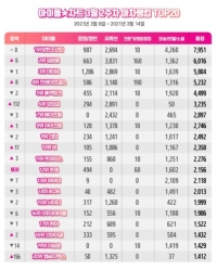 林英雄在偶像排行榜3月第2周(2021年3月8日~2021年14日)的排行榜上,继防弹少年团(BTS,总分7951)之后排在第二位(总分6016)。 与前一周相比足足上升了6个名次,这是林英雄第一次在次序排名中位居第二。