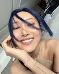 公开的照片中,华莎身穿裸色无袖,展现了完美的身材。特别是变身蓝色发型的华莎以酷酷的表情吸引了粉丝们的视线。