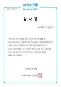 联合国儿童基金会韩国委员会向所有帮助儿童共同创造幸福世界的赞助者表示深深的感谢,并祝愿永远健康和幸运。"